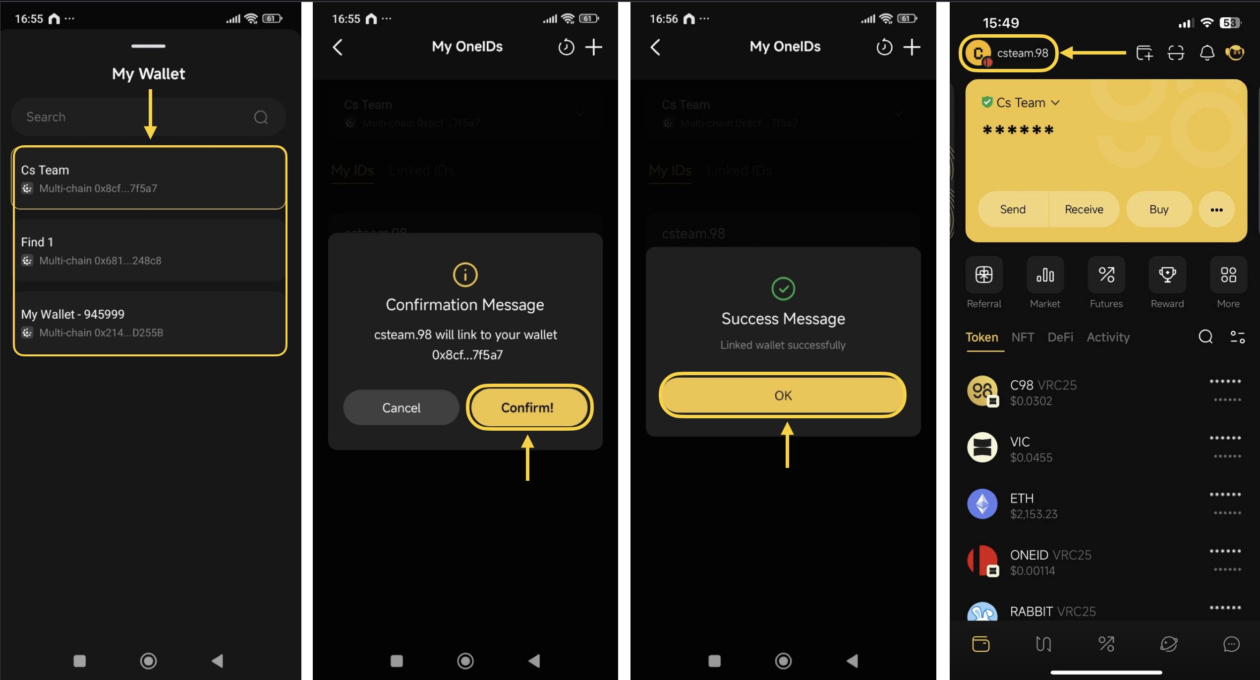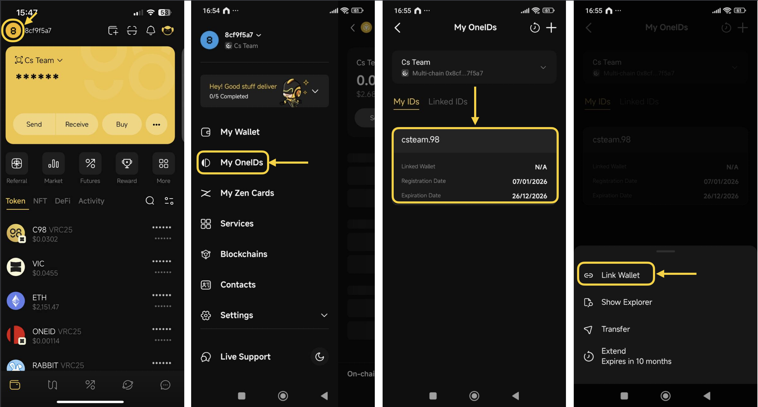 **Step 3**: Select the OneID you want to link ⇒ choose **Link Wallet**